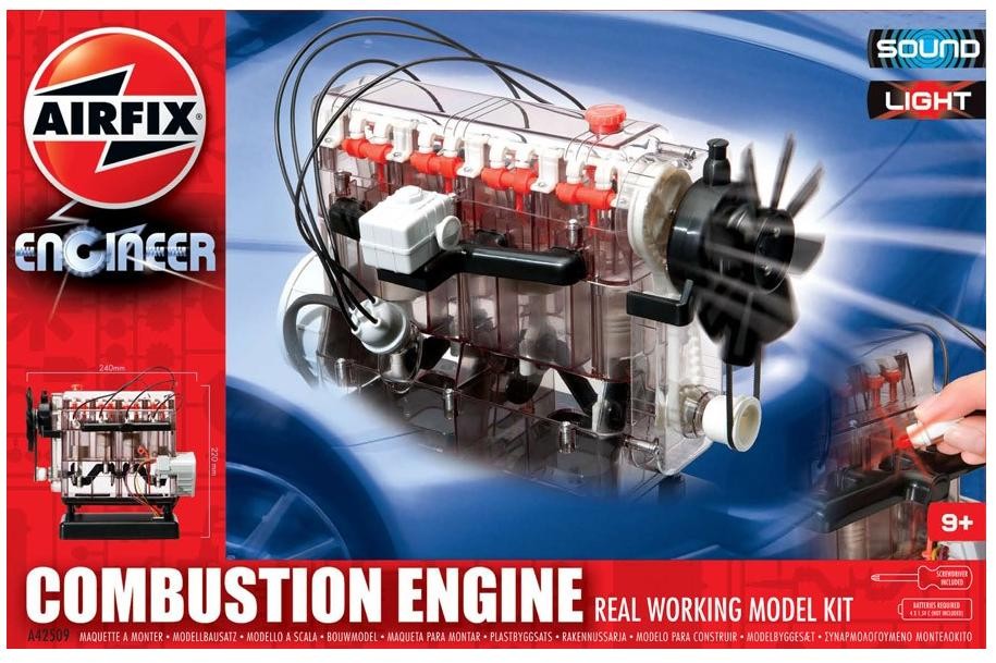 Featuring light and sound, this fantastic engine is a marvellous and fun way to learn all about how an internal combustion engine works. First the engine 'starts up' and then it runs 'firing' to show how the combusting fuel and air drives the pistons down to make the crankshaft turn.