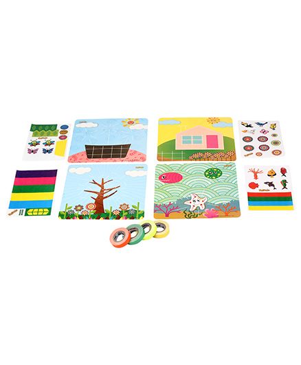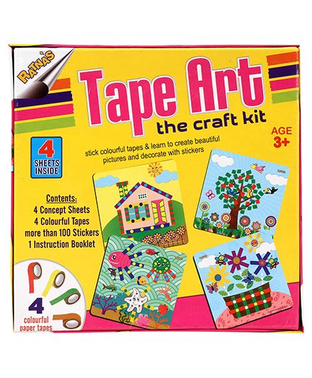 Stick colourful tapes and learn to create pictures through Tape Art. Decorate these pictures with beautiful stickers. This kit from Ratna's contains 4 concept sheets, 4 colourful tapes, 1 instruction sheet, and more than a 100 stickers.