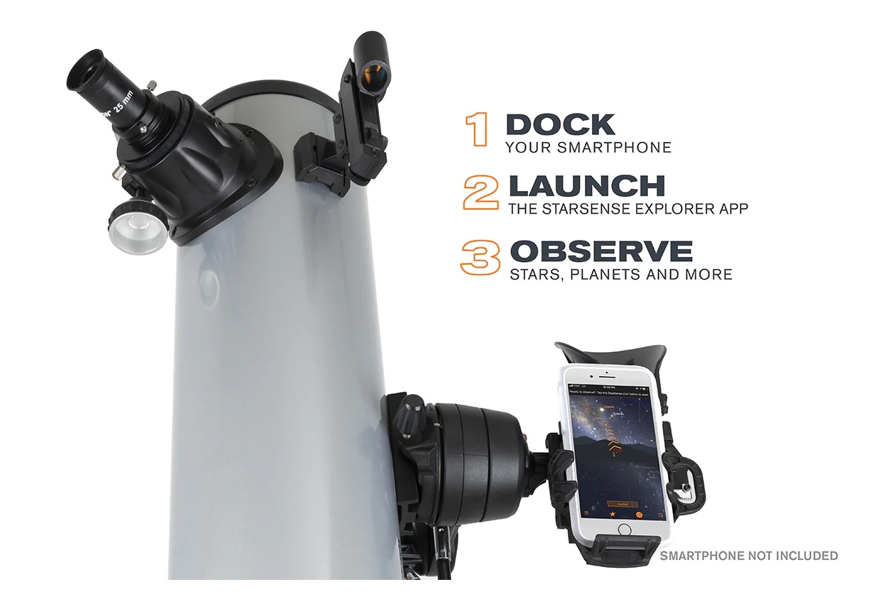 - Includes 25mm and 10mm eyepieces, StarSense smartphone dock, a red dot finderscope (in case you want to use the telescope without your phone), and a sturdy, full-height tripod.