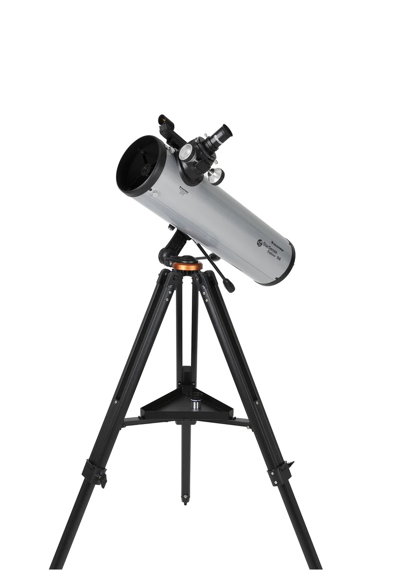 With a large 130mm (5”) objective lens, this telescope has enough light gathering ability to bring out impressive detail in celestial objects. You can expect sharp, bright views of Jupiter’s four Galilean moons, its cloud bands and Great Red Spot, the rings of Saturn, the trapezium in the Orion Nebula, and beautiful Pleaides Open Star Cluster. Highly reflective coatings on both the primary and secondary mirror enhance the views even more.