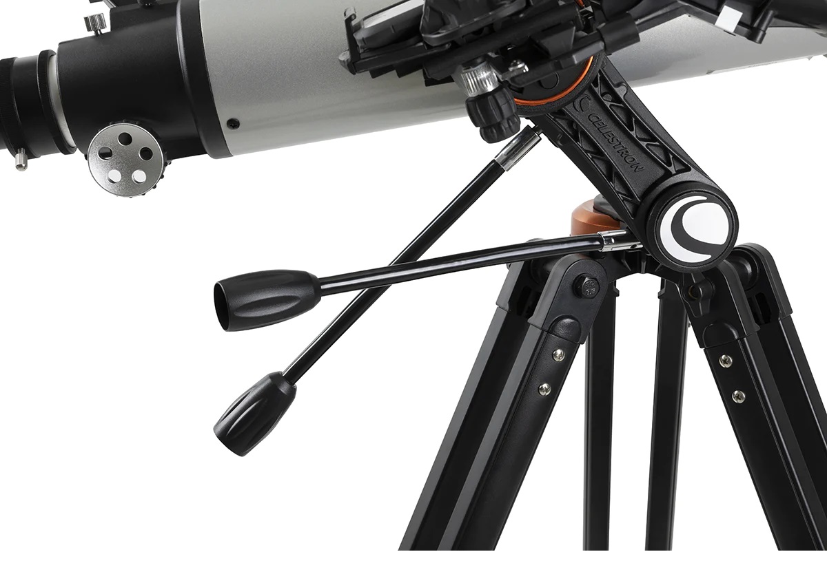 With a large 102mm (4”) objective lens, this telescope has enough light gathering ability to bring out impressive detail in celestial objects. You can expect sharp, bright views of Jupiter’s four Galilean moons, its cloud bands and Great Red Spot, the rings of Saturn, the trapezium in the Orion Nebula, and beautiful Pleaides Open Star Cluster. Celestron’s XLT optical coatings improve light transmission, enhancing the views even more.  The telescope also includes a 90-degree erect image diagonal, so you can use it during the day to view birds, wildlife, landscapes, and more.