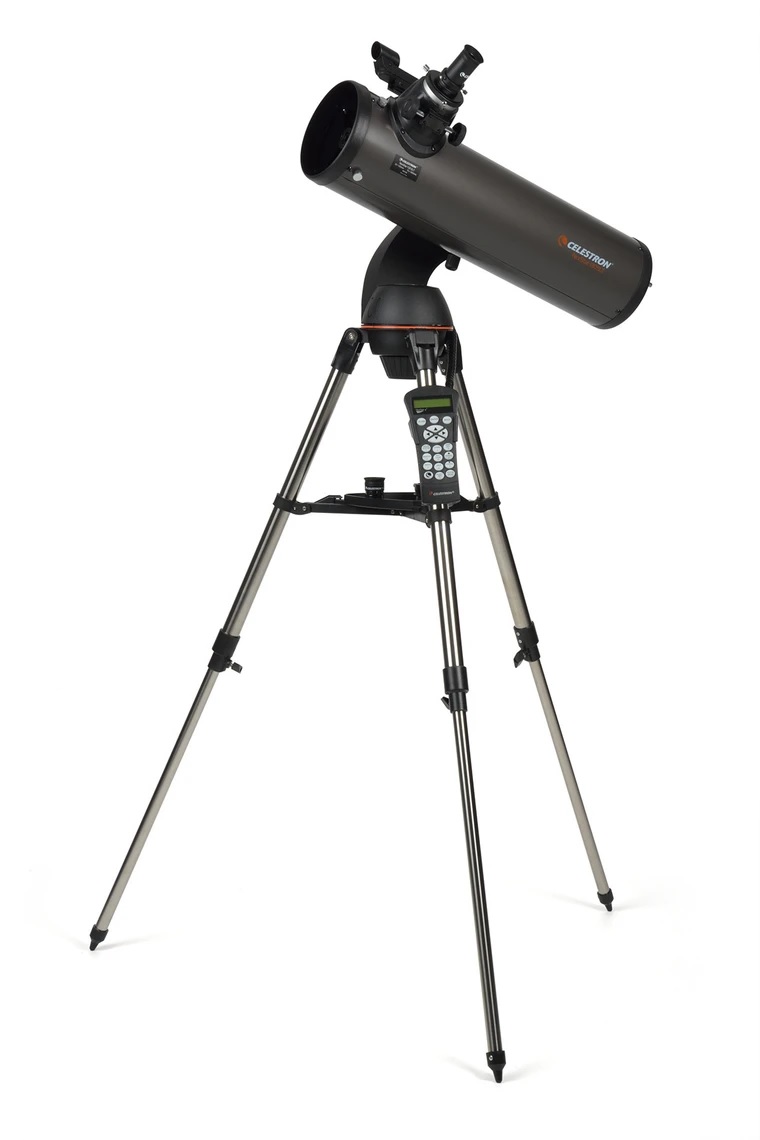 This telescope comes with a pre-assembled, adjustable stainless-steel tripod, quick release fork arm, NexStar+ computerized hand control, 130mm Newtonian Reflector optical tube, and lots of bonus accessories.