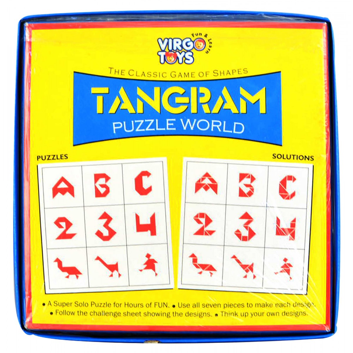 Virgo Toys Tangram Puzzle World.A supper solo puzzle for hours of fun. Use all seven pieces to make each design. Follow the challenge sheet showing the designs.Think up your own designs. improves your kids Problem Solving, Creativity & Imagination. Virgo Toys Tangram Puzzle World is a perfect product to children’s and adults