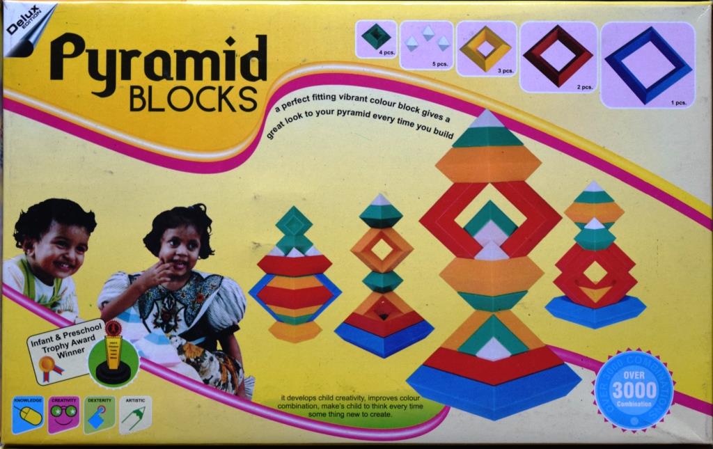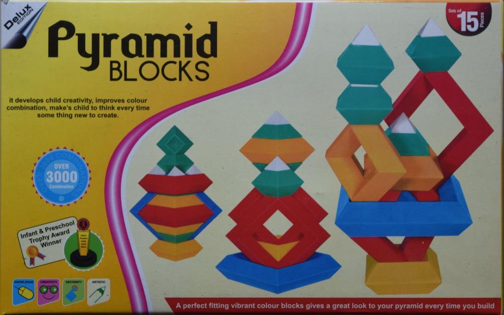 It develops child creativity, improves colour combinations, make's child to think every time some thing new to create. A perfect fitting vibrant colour blocks gives a great look to your pyramid every time you build. Over 3000 Combination.